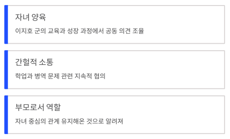 알려지진 않았지만 자녀의 양육과 교육 문제로 인해 두 사람은