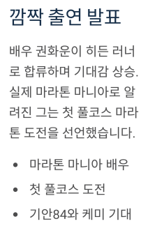 권화운은 이번 출연에서 첫 풀코스 마라톤 도전을 공식 선언했고,