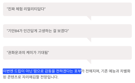 기존 예능과 차별화된 콘텐츠로 자리매김할 것으로 보입니다.