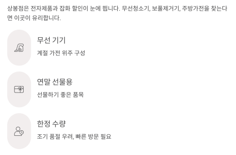 | 2 | 동원 참치 10캔 | 주부 필수템, 대량 할인 |