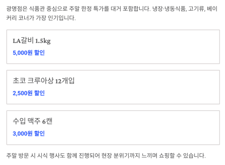 광명점: 주말 특가로 먹거리 대폭 세일