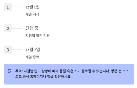 12월 첫째 주, 코스트코가 대규모 할인 프로모션을 시작했습니다.