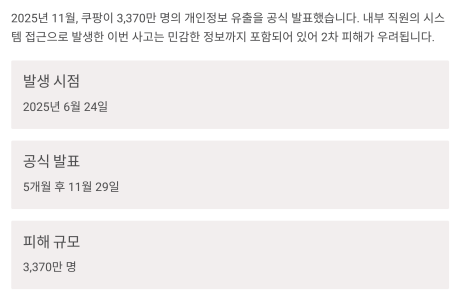 2025년 11월 말, 쿠팡이 공식적으로 3,370만 명 고객의
