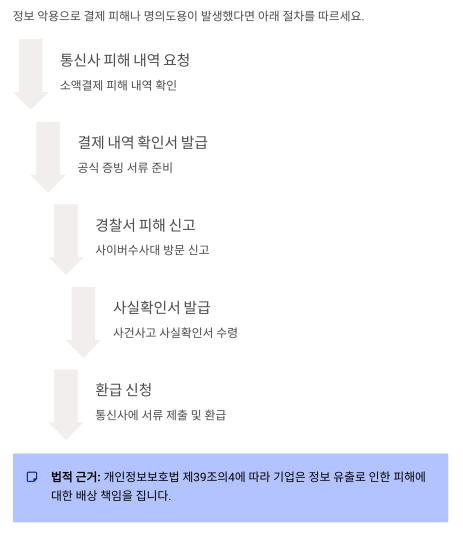 만약 정보가 악용되어 결제 피해나 명의도용이 발생했다면,