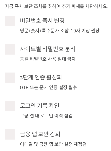 | 금융 앱·이메일 보안 강화 | 보안 설정 및 인증 재점검 |