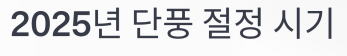 2025년 기준, 단풍 절정은 10월 20일 전후부터 11월 초까지로 예상됩니다.