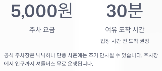 - 주차장에서 입구까지 셔틀버스 무료 운행