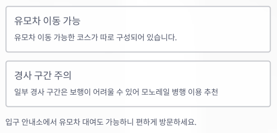 다만 경사 구간은 보행이 다소 어려울 수 있으므로, 모노레일과 병행 이용이 추천됩니다.