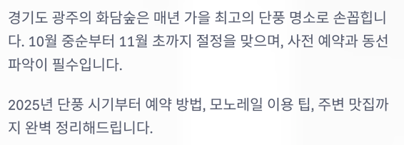 이 글에서는 2025년 단풍 시기 예측부터 화담숲 예약 방법, 모노레일 이용 팁,