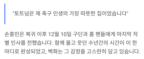 “토트넘은 제 축구 인생의 가장 따뜻한 집이었습니다”라는 그의 말은