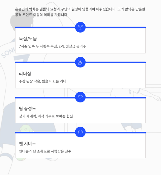 레들리 킹, 해리 케인, 그리고 2025년 12월 공개된 손흥민이 그 주인공입니다.