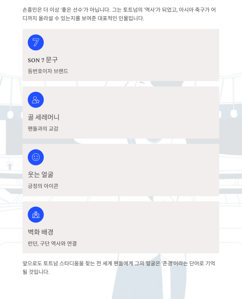 토트넘과의 추억들이 하나하나 그려져 있습니다.