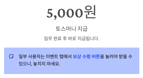 임무 완료 후 5천 원은 토스머니로 바로 지급됩니다.
