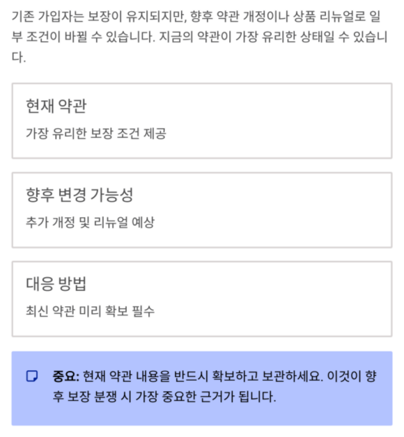 따라서 ‘지금의 약관 내용’이 가장 유리한 상태일 수 있으며,