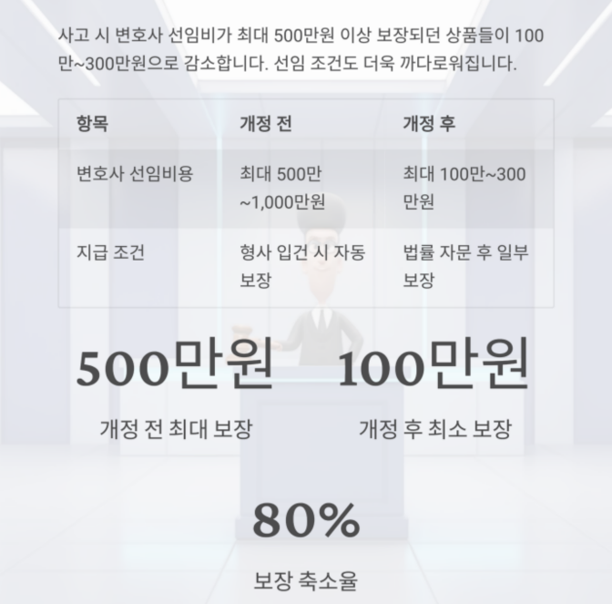 특히 ‘변호사 선임비용’과 ‘형사합의금’ 등 핵심 보장 항목들이 대폭 축소되며,