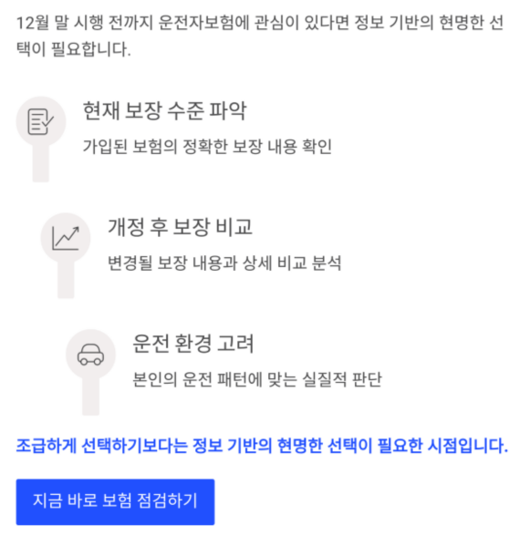 12월 말 시행 전까지 운전자보험에 관심이 있다면