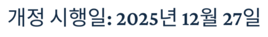 이번 개정안은 2025년 12월 27일부터 시행되며,