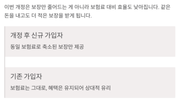 즉, 같은 돈을 내고도 더 적은 보장을 받게 된다는 뜻이죠.