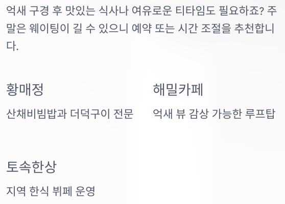 억새 구경 후 맛있는 식사나 여유로운 티타임도 필요하죠?