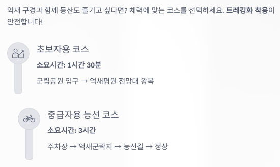 군립공원 입구 → 억새평원 전망대 왕복 - 중급자용 능선 코스 (3시간)