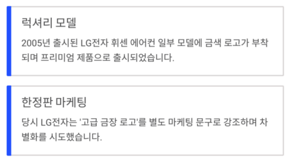 엘지전자에서는 별도 마케팅 문구로 '고급 금장 로고'를 강조했었죠.