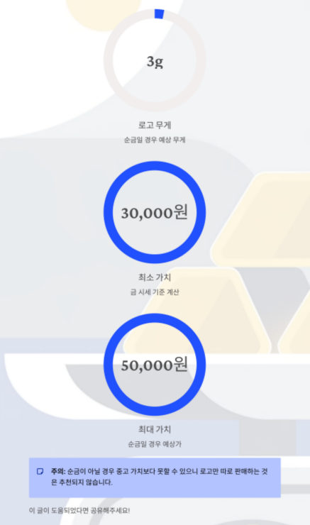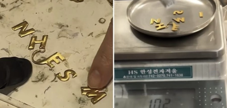 만약 진짜 순금이라면 로고 무게는 3g 내외로 예상되며,