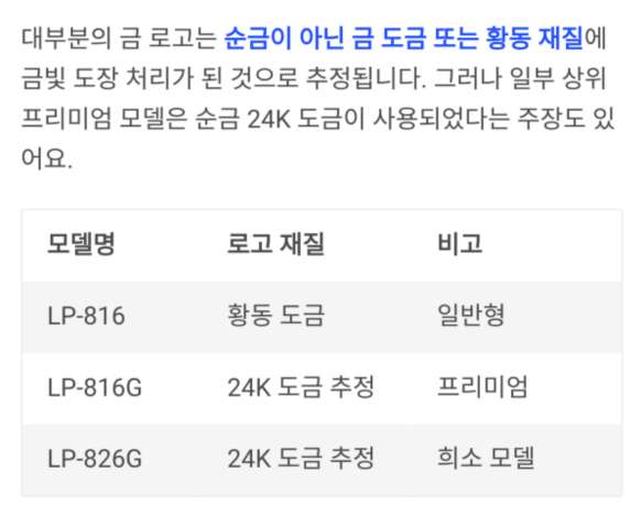 | LP-826G | 24K 도금 (커뮤니티 추정) | 희소 모델 |