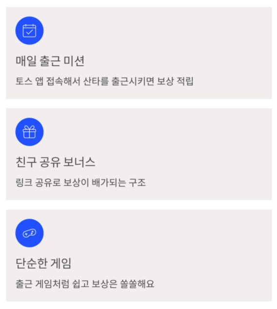 매일 토스 앱에 접속해 산타를 출근시키는 미션형 이벤트입니다.