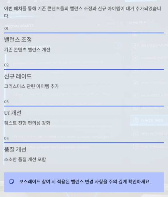 패치노트 확인은 필수이며, 특히 보스레이드 참여 시