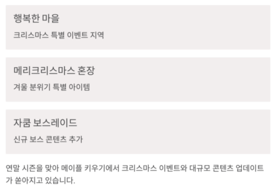 메이플 키우기의 대표적인 크리스마스 이벤트