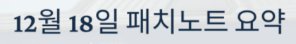 12월 18일 패치노트 요약, 꼭 확인하세요