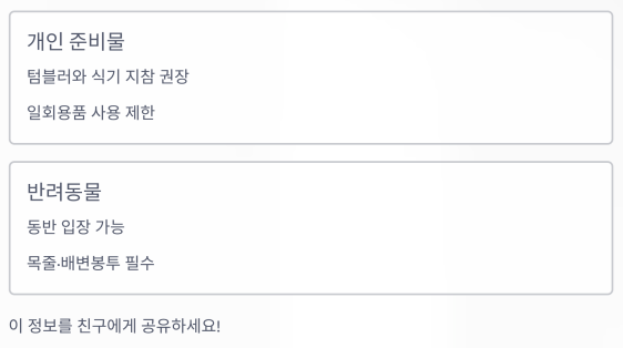 또한 반려동물 동반 입장은 가능하지만, 목줄과 배변봉투 지참은 필수입니다.