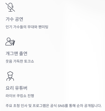 무대 공연과 팬미팅, 쿠킹쇼 등을 선보일 예정입니다.