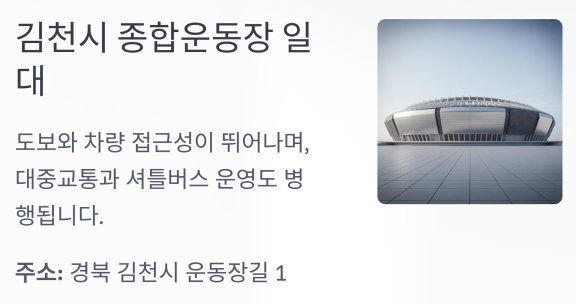 주소를 내비게이션에 입력하실 때는 “경북 김천시 운동장길 1”로 검색하시면 됩니다.