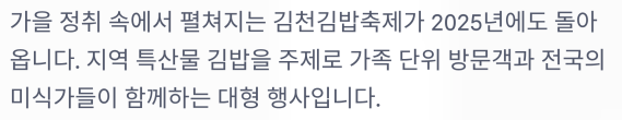 2025년 김천김밥축제가 다시 돌아옵니다.