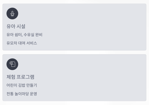 아이와 함께 오시는 분들을 위해 유아 쉼터, 수유실, 유모차 대여 서비스가 운영됩니다.