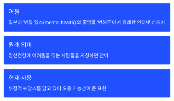 줄임말인 '멘헤루'와 관련된 인터넷 신조어입니다.