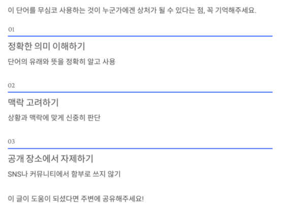 이 단어를 무심코 사용하는 것이 누군가에겐 상처가 될 수 있다는 점,