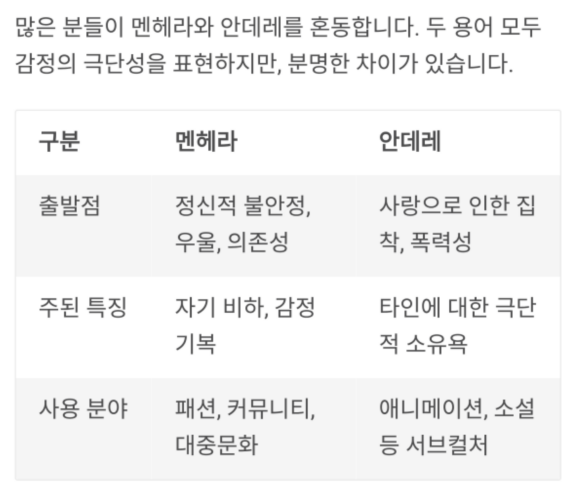 많은 분들이 멘헤라와 안데레를 혼동합니다.