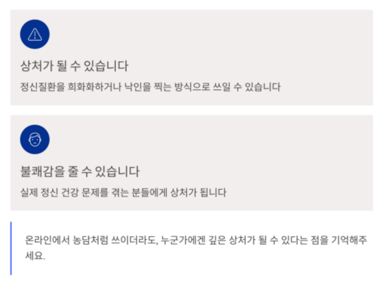 실제 정신 건강 문제를 겪는 분들에게는 불쾌할 수 있습니다.