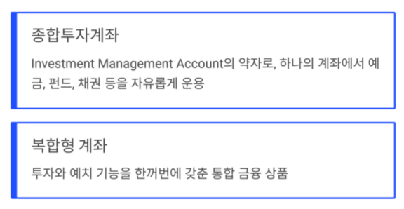 IMA는 "종합투자계좌(Investment Management Account)"의 약자로,