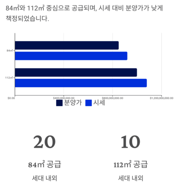 특히 84㎡와 112㎡의 주요 평형대 공급 정보와 함께,