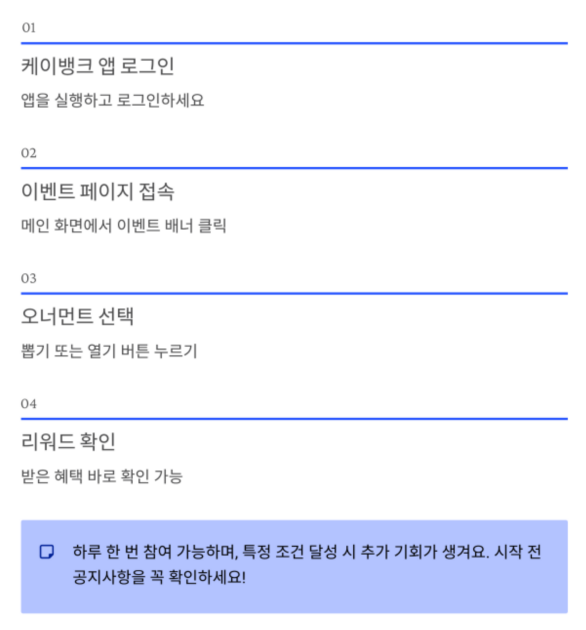 이벤트에 참여할 수 있는 조건이나 방식은 계속 바뀔 수 있기 때문에,