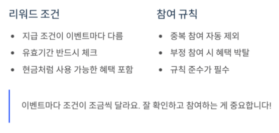 이벤트마다 리워드 지급 조건이나 유효기간이 조금씩 달라요.