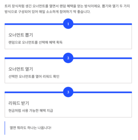 오너먼트를 열면서 랜덤 혜택을 얻는 방식이에요.