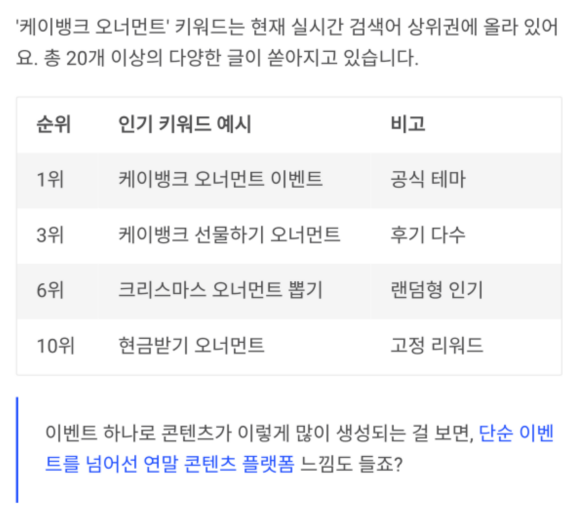 이벤트 하나로 콘텐츠가 이렇게 많이 생성되는 걸 보면,