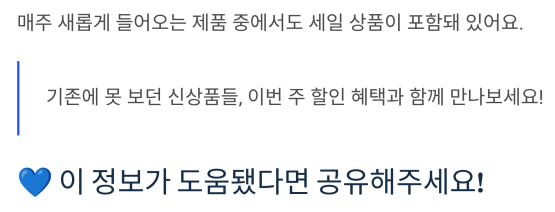 매주 새롭게 들어오는 제품 중에서도 세일 상품이 포함돼 있어요.