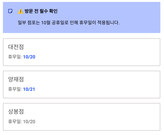 방문 전 꼭 매장별 운영 일정 확인하세요.