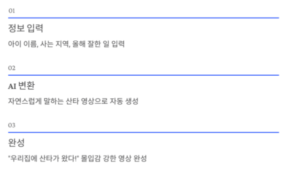 AI가 이를 자연스럽게 말하는 산타 영상으로 변환해 줍니다.