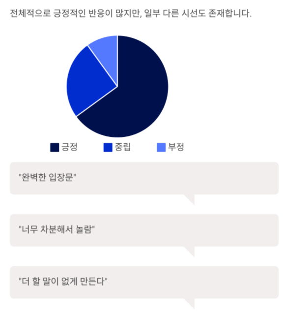 전체적으로 긍정적인 반응이 많지만, 입장문의 톤이